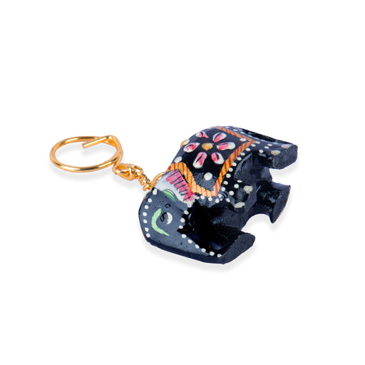 Elephant Statue Key Chain - 1.5 x 2.5 Inches | Wooden Key Holder/ Painted Elephant Idol Key Ring for Car & Bike