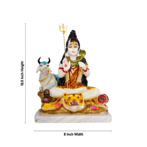 View full details• Elevate your sacred space with this intricately coloured Shiva statue accompanied by Nandi, the divine bull and gatekeeper of Kailash. • Made fro...
