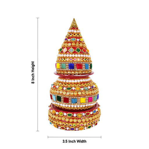 View full detailsDecorated Lota And Coconut With Base Set - 9 x 4 Inches | Chombu & Holder/ Metal Kalash for Wedding