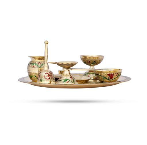 Sacred Elegance for Every Ritual! Bring devotion and tradition together with this Meenakari Design Pooja Thali Set, an exquisite 8-piece puja thal...