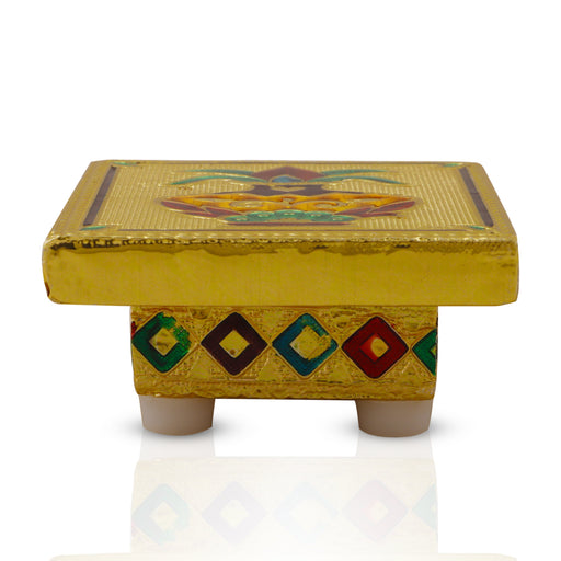 View full detailsBajot - 1.75 x 5 x 5 Inches | Wooden Manai/ Gold Polish Meenakari Design Chowki for Pooja