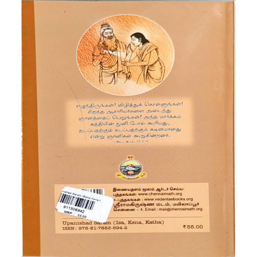 View full detailsAbout the Book: "Upanishad Saram – Isa, Kena, Katha – Tamil – Sanskrit" • Upanishad Saram – Isa, Kena, Katha is a treasured upanishad book that pre...
