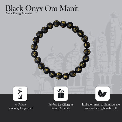 "Black Onyx Om Mani - Gem Energy Bracelet: Spiritual Elegance with Power." ♦ Also Known As Crystal bracelet, hand band, energy stone band, gemston...