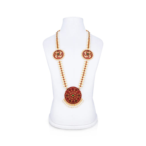 • Elevate the spiritual ambiance and embrace the divine grace of your cherished deity with our stunning Kemp Necklace, an ideal choice for Varalaks...
