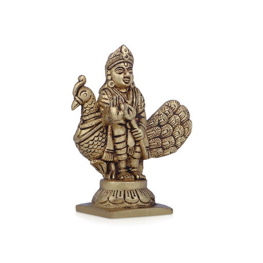 View full detailsBalamurugan Statue with Peacock - 3.75 x 3.5 Inches | Antique Brass Idol/ Kartikeya Statue for Pooja