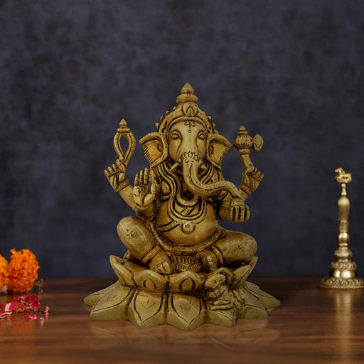 View full detailsGanesh Statue - 4 x 3 Inches | Antique Brass Statue/ Ganesh Murti Idol for Puja/ 580 Gms Approx