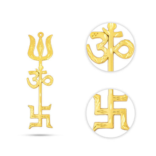 View full detailsOm Swastik Trishul - 5 x 1.5 Inches | Om Swastik Soolam/ Metal Om Swastik Design Astras for Deity