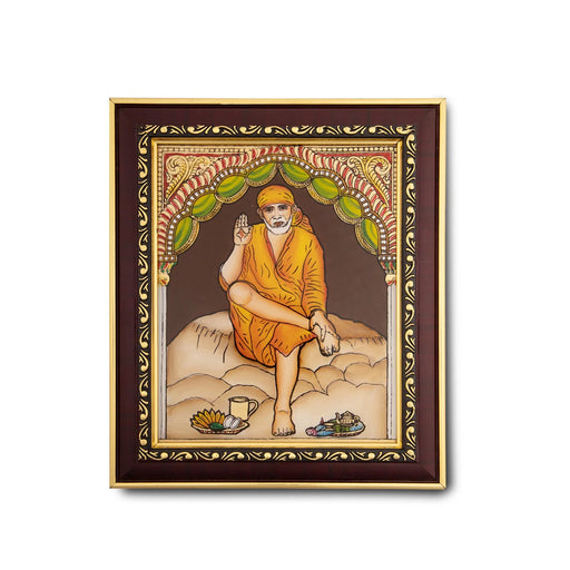 Saibaba Photo Frame - 10 x 8 Inches | Tanjore Glass Painting Picture Frame for Home