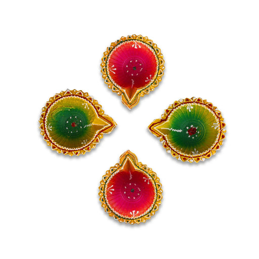 Decorative Diya Set - 1 x 2.5 Inch | 4 Pcs/ Agal Vilakku/ Clay Deepam for Pooja/ Assorted Design