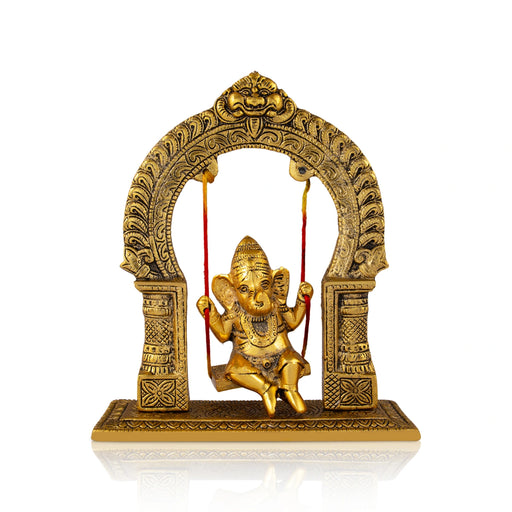 Jhula Ganesh Murti With Arch - 9 x 7.5 Inches | Aluminium/ Gold Polish Ganpati Murti With Base for Pooja