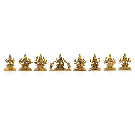 Ashtalakshmi Idol With Base Set - 5 x 4.5 Inches | Sitting Ashtalaxmi Murti/ Antique Brass Idol for Pooja