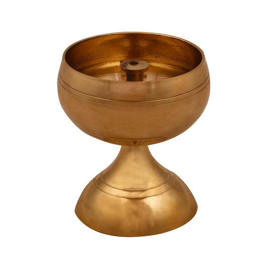 View full detailsBrass Nanda Deep with Base - 4 x 2.5 Inches | Brass Lamp/ Vilakku/ Apple Nanda Diya for Pooja