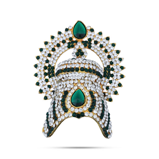 • Enhance the divine charm of your beloved Deity with this magnificent stone Kireedam! This regal stone Kiritam for Deity decoration is a breathtak...