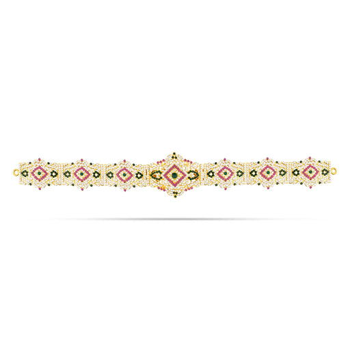 View full detailsHalf Stone Crown - 4 x 2.25 Inches | Kireedam/ Kiridam/ Multicolour Stone Mukut for Deity Decor