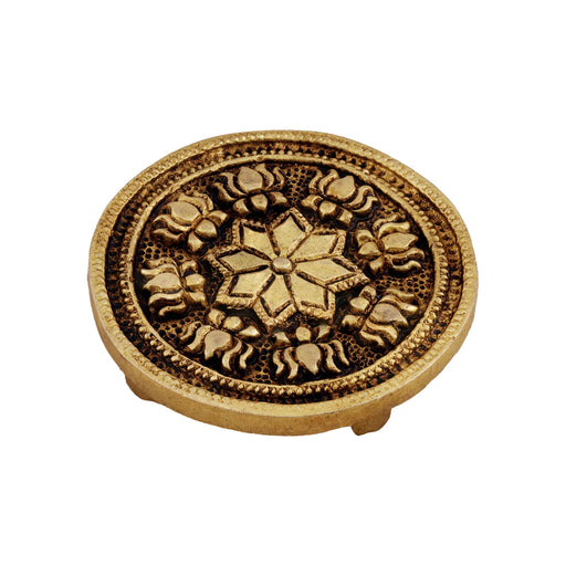 View full detailsChowki - 0.75 x 2.75 Inches | Antique Brass Patla/ Round Shape Bajot for Pooja/ 100 Gms Approx