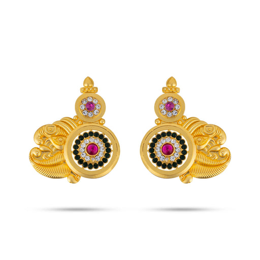 View full details"Sparkling Symbol of Grace – Karnapathakkam Stone Ear Set for Divine Elegance" ♦ Also known as: stone stud set, Karnapathakkam, temple wear earrin...