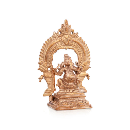 Ganesh Murti Sitting On Base With Arch - 2.75 X 1.25 Inches | Panchaloha Statue/ Vinayaka Statue For Worship