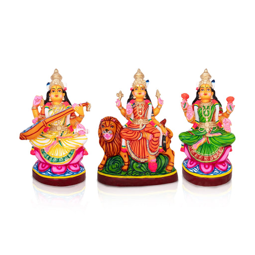 View full detailsDivine Trio for Your Golu Display! Bring home divinity, tradition, and artistry with the Lakshmi Saraswati Durga Paper Mache Golu Bommai Set, a gr...