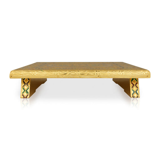 Pooja Chowki - 10 x 10 Inches | Wooden Bajot/ Gold Polish Manai Palagai/ Meenakari Design Patla for Home