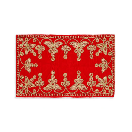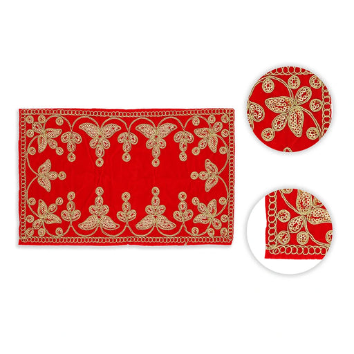Pooja Aasan - 7 x 12 Inches | Velvet Pooja Mat/ Embroidery Aasan for Deity