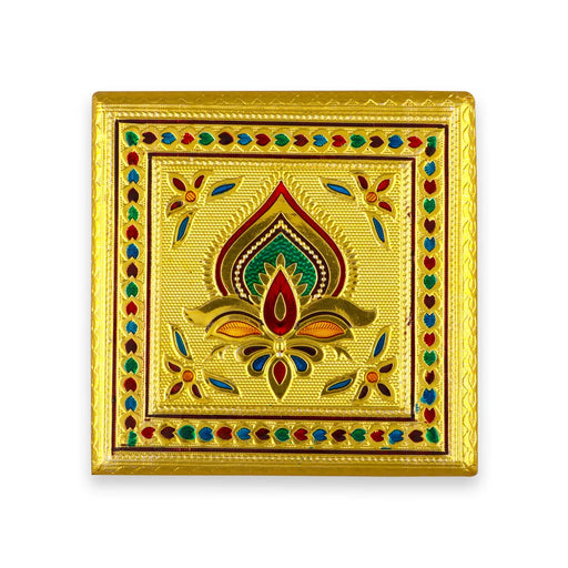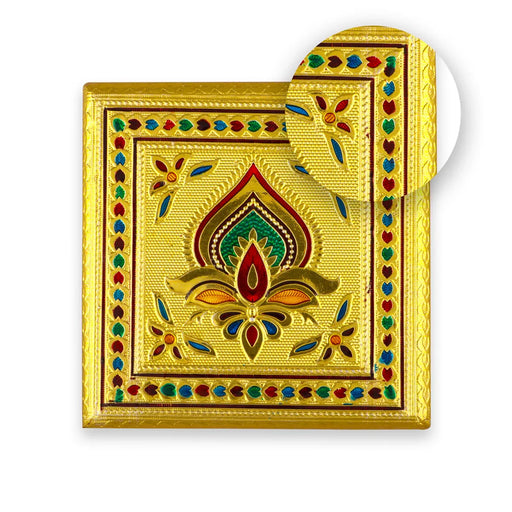 Bajot - 1.5 x 4 x 4 Inches | Meenakari Design Chowki/ Golden Polish Manai Palagai for Pooja/ 175 Gms Approx