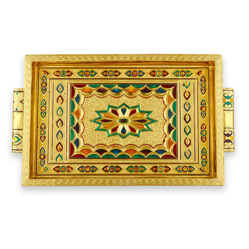 Choky Tray - 1.5 x 12 x 8 Inches | Meenakari Serving Tray/ Gold Polish Plate for Home