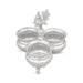 • The kumkum holder is an indispensable tool for traditional pooja ceremonies. The three cups can be filled with chandan (sandalwood paste), kumkum, and other ritualistic offerings. Typically, the chandan cup is used to apply sandalwood paste to the idols, while the kumkum holder is used to offer vermilion during prayers. The white metal ensures longevity, making this set suitable for both regular and special pooja events.