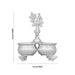 Transform your pooja rituals with this beautifully crafted chandan cup and kumkum holder set, made from white metal. Featuring three interconnected cups with a delicate Annam (peacock) design at the top, and legs at the bottom depicting elephants, this pooja cup set is a symbol of elegance and spirituality. Its pure white metal finish and intricate design make it an essential item for any religious offering.