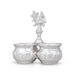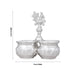 Transform your pooja rituals with this beautifully crafted chandan cup and kumkum holder set, made from white metal. Featuring three interconnected cups with a delicate Annam (peacock) design atop, this pooja cup set is a symbol of elegance and spirituality. Its pure white metal finish and intricate design make it an essential item for any religious offering.