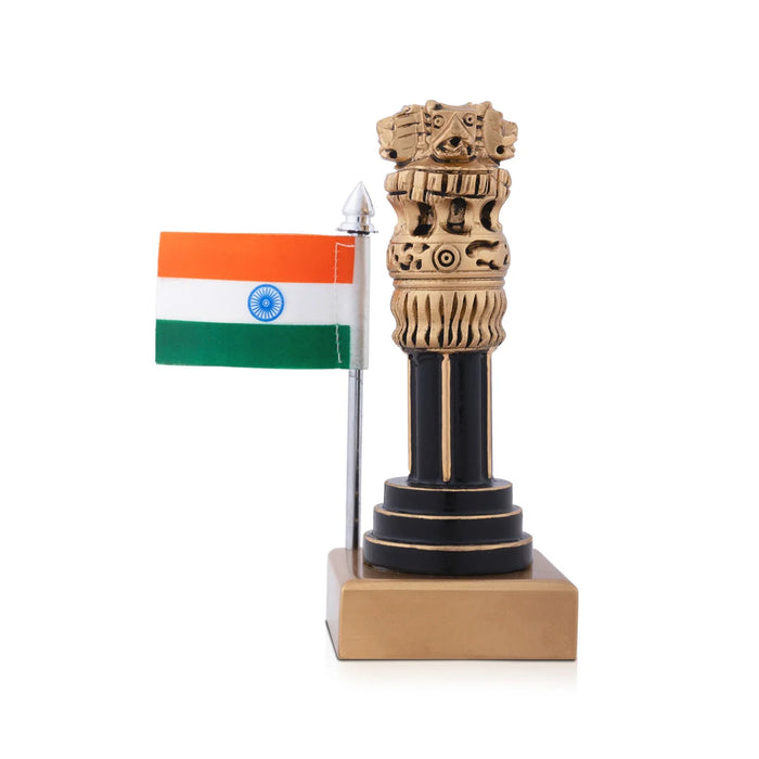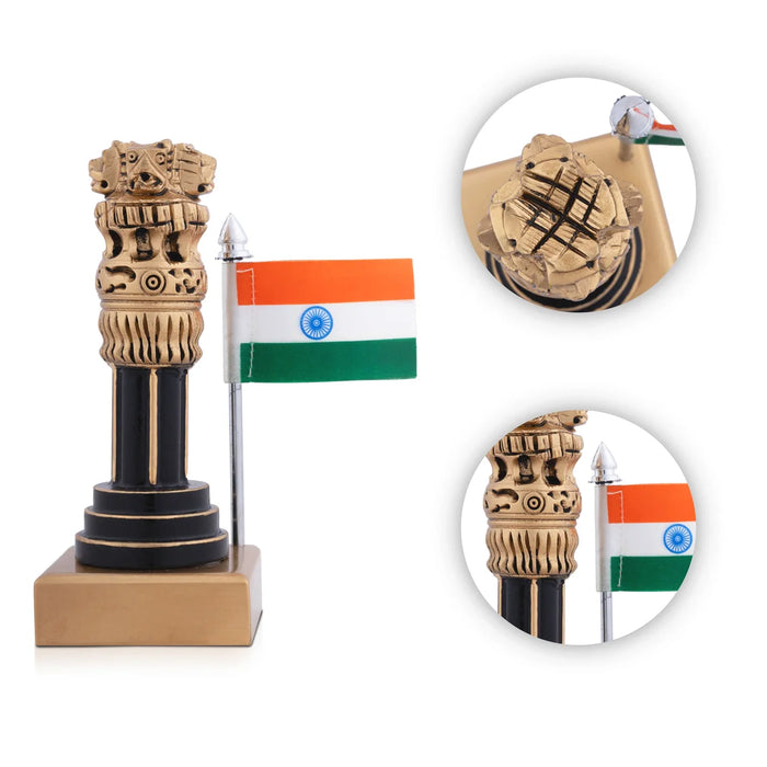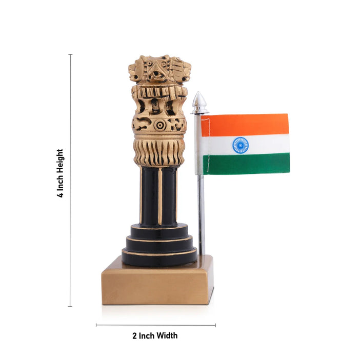 Ashoka Pillar Statue with Flag - 4 x 2 Inches | Ashoka Pillar Idol/ National Emblem for Home Decor