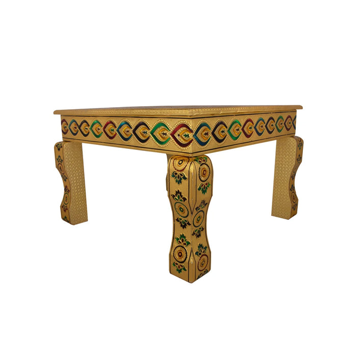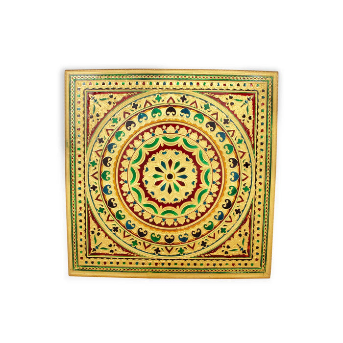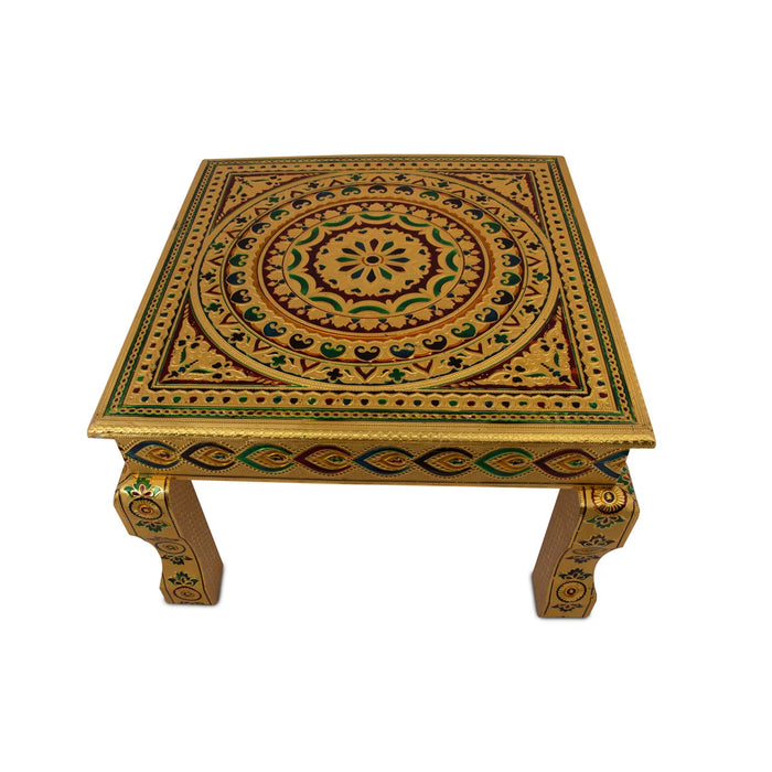 Bajot - 18 x 18 Inches | Meenakari Design Chowki/ Golden Polish Manai Palagai for Pooja/ 5.225 Kgs Approx