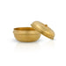 • This brass kumkum box features a compact and portable design. It has a rounded body with a lid that securely fastens to keep the contents safe and prevent spillage.