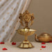 Made from brass, our brass lamp is crafted for long-lasting durability and resistance to corrosion. The polished finish not only adds to its visual appeal but ensures it stays gleaming throughout its use. The brass deepam is chosen for its sturdiness, capable of withstanding repeated use without losing its charm. The lamp’s weight and design provide excellent stability, ensuring that it remains securely in place during pooja ceremonies.