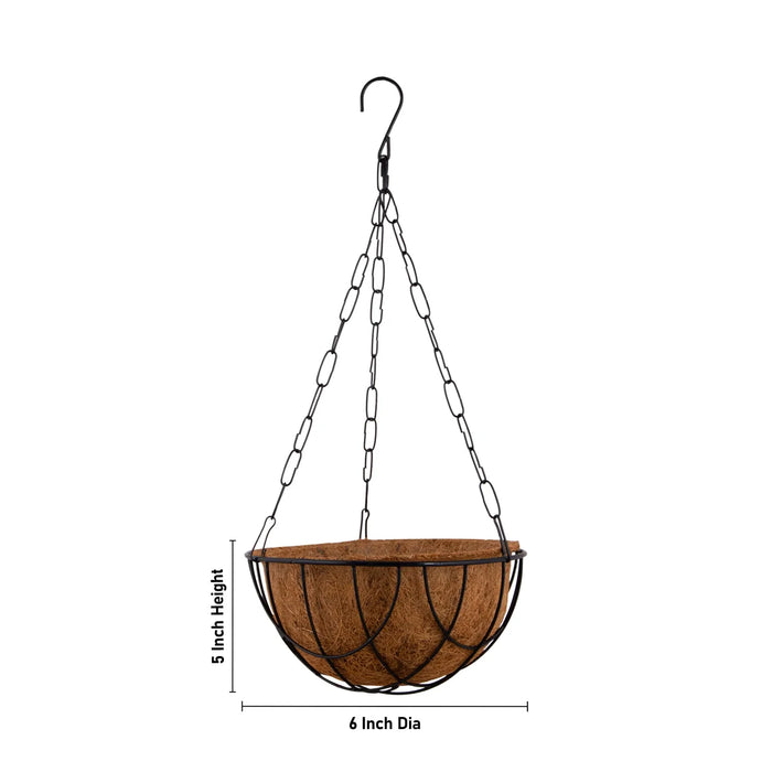 Coco Pot with Metal Hanger - 5 x 6 Inches | Coir Pot/ Coir Plant Pot
