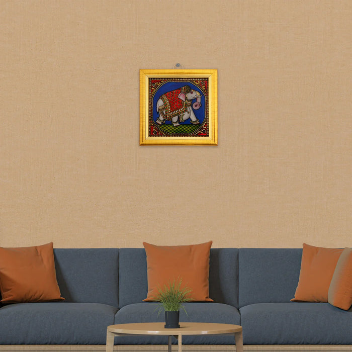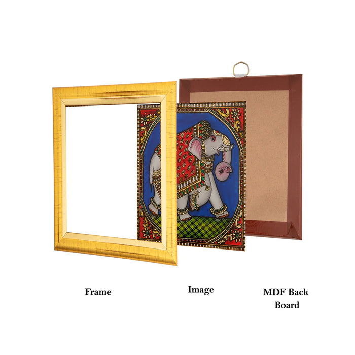 Elephant Photo Frame - 5 x 5 Inches | Tanjore Glass Painting Picture Frame for Home Décor