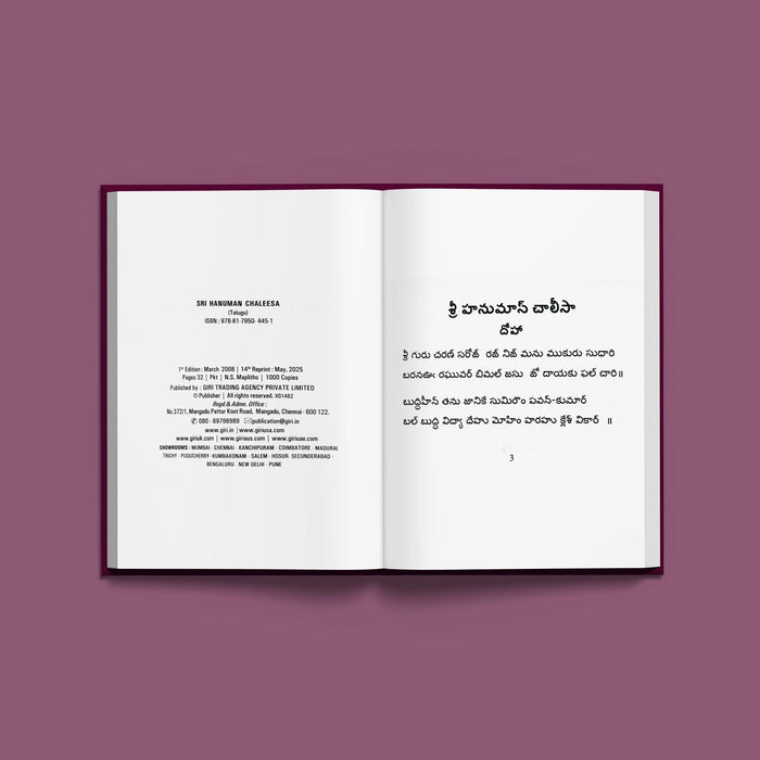 Hanuman Chaleesa - Telugu | Stotra Book/ Hindu Religious Book
