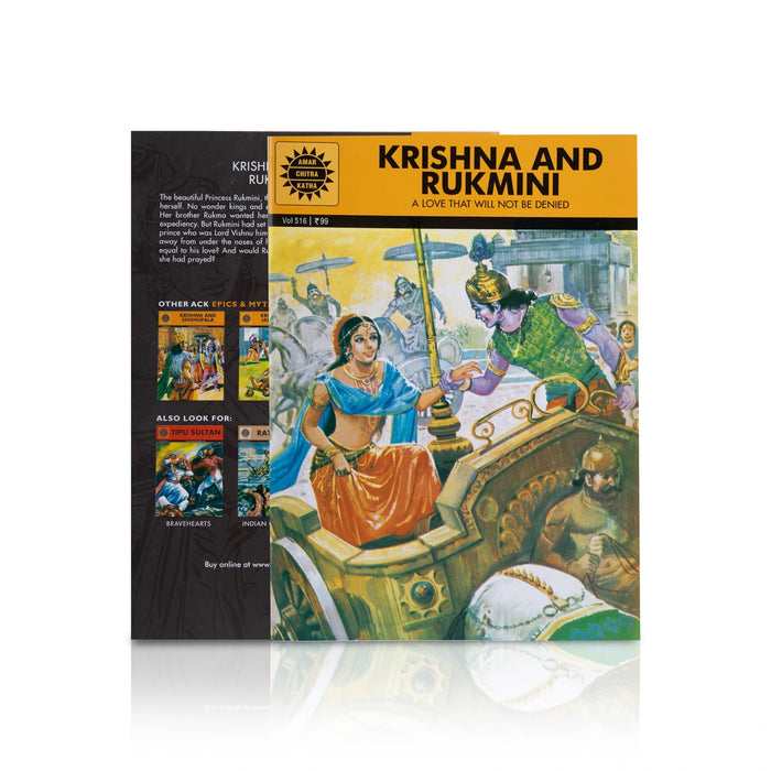 This engaging Amar Chitra Katha narrates the divine love story of Lord Krishna and Princess Rukmini, emphasizing the strength of devotion and destiny. Rukmini, the princess of Vidarbha, chooses Krishna as her ideal companion despite familial opposition. As she faces the challenge of an arranged marriage, she sends a heartfelt message to Krishna, seeking his help. Responding to her unwavering faith, Krishna embarks on a bold mission to rescue her, proving that true love conquers all. With stunning visuals and an engaging storyline, this storybook introduces young readers to India’s mythological heritage in an entertaining and accessible way.