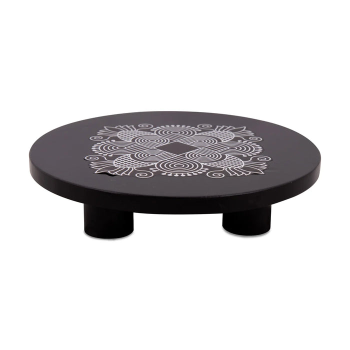Manai Palagai - 6 Inches | Mata Ki Chowki/ Round Wooden Patla/ Rangoli Design Bajot for Pooja