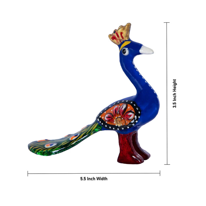 Painted Peacock Statue - 3.5 x 5.5 Inches | Metal Peacock Idol/ Peacock Figurine for Home