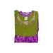 • Styled as a mini gown dress, it features ethnic motifs, subtle zari highlights, and a flared silhouette, making it perfect for temple visits, birthdays, and milestone photos.