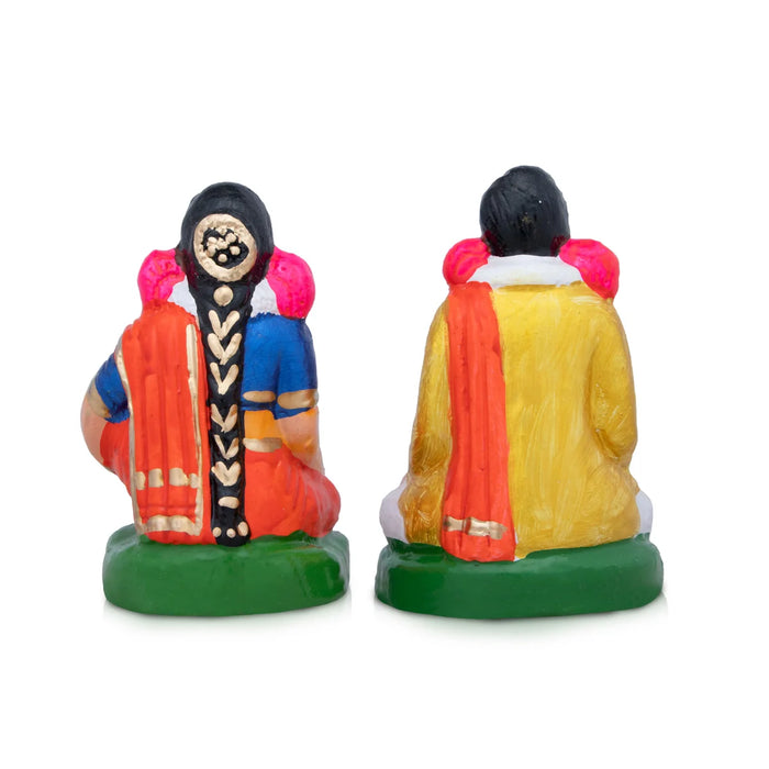 Pen Mappillai Clay Golu Bommai Pair - 7 x 4 Inches | Giri Golu Doll/ Navaratri Golu Bomma/Gombe/Bommai
