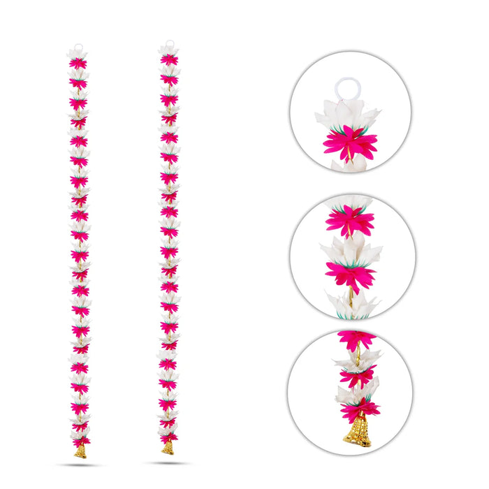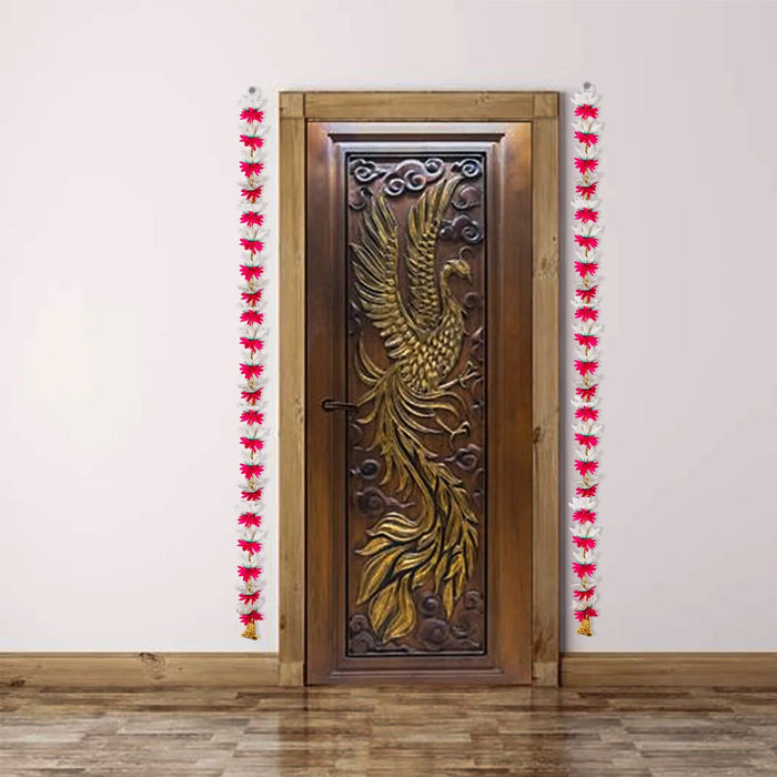 In Hindu houses and temples, a toran—also called a bandanwar or door hanging—is a common decorative object. It is often draped over the entryway or entrance to a room and is fashioned of brightly coloured fabric or flowers. Torans are available in many designs like mango torans, mixed torans, cloth torans, flower torans, beads torans and so on. Torans have spiritual value in addition to serving as ornamental elements. Especially this toran is made up of vibrant coloured flowers for long-lasting purpose. With a variety of hues and patterns, they frequently feature exquisite designs and beautiful craftsmanship. Overall, torans have a significant role in Hindu history and culture. They are frequently employed to enhance the aesthetic appeal and spiritual value of houses and temples.