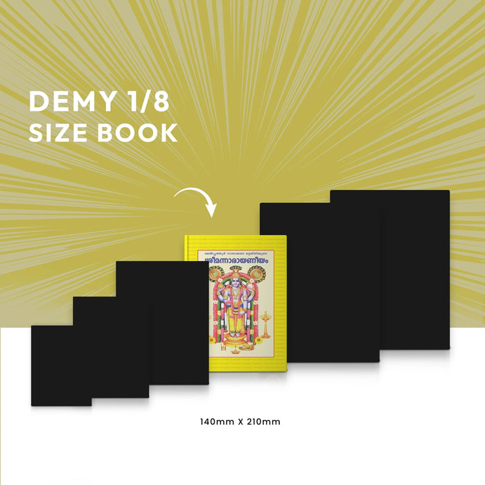 • This Hindu Spiritual book is available in Malayalam text, and since the text is bold, it is easy for anyone to read. Older people can easily read the book as well.