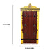 • This Pooja Mandapam is crafted from wood and features intricate carvings. Its design with a door with hanging bells symbolizes the entrance to the divine realm.